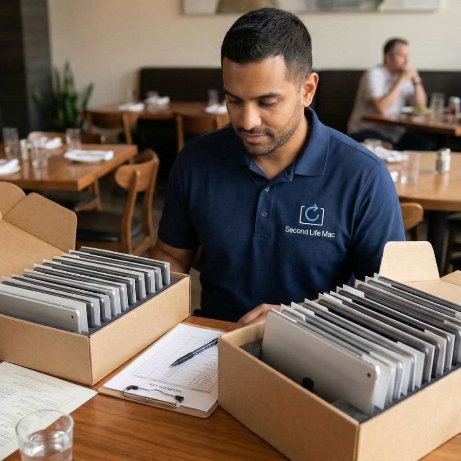 Because your iPad-based POS and ordering systems—even after 2-3 years of restaurant use—hold real value. Many restaurant groups don’t realize their previous-generation iPads are worth hundreds each in resale. That value across multiple locations adds up quickly. E-recyclers focus on disposal, not value recovery. We’re Apple specialists who understand restaurant-use devices still hold significant resale value in secondary markets. For restaurant groups managing tight margins, that value recovery helps fund your next technology upgrade across locations. We provide both maximum value recovery and responsible device disposition.